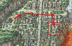 一行は大きな屋敷だった区画へ。
