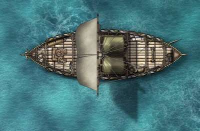 湾に着いた猫団は、頑丈そうなまだ使える船を見つける。呪文で応急修理(メンディング)をして、長い船旅へ。
