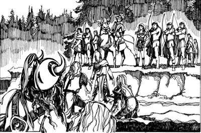 上陸してつかの間、突然エルフたちに囲まれる。ここでは初めて見るシルヴァネスティとそれに従うカゴネスティ(ウッドエルフ)のエルフたちだった。