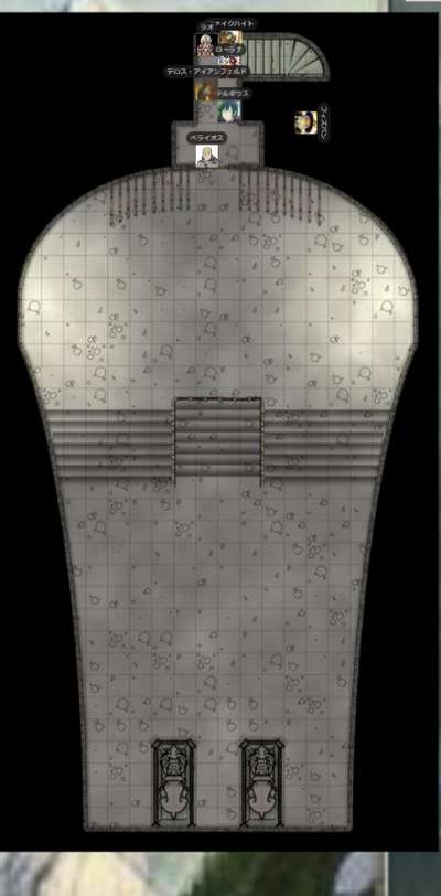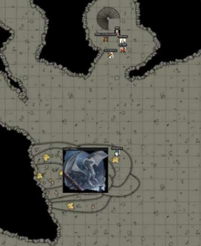 蝙蝠を一掃後、一見なにも無さそうな砦跡だったが、床のもろい部分があったのか、先行していたペテルギウス(てまだ)が地下の穴に堕ちてしまう!目の前にいたのは、なんと本物の巨大な銀の竜であった!名前をダージェントというらしい。あわてて階段を降りる他の者たち。