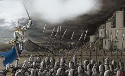 ホワイトストーン会議の結果がさんざんだったので、味方はソラムニア騎士団とパランサスの数百程度であった。これに対し、敵は恐らく、あのキティアラ率いる青軍一個師団千名以上がまるまる襲来するだろう!