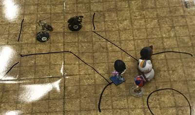 正面から入らず、右の崩れた城壁から侵入する、いつもの緑の盾団w