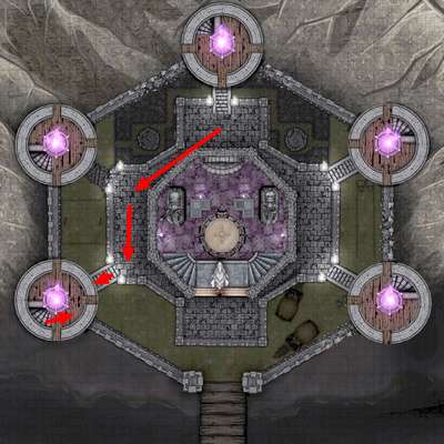 しかしそこは5つの塔の屋上全てに紫色に怪しげに光る炎が灯っていた。