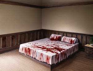 そこは、古い黒ずんだ血だらけの寝室だった!