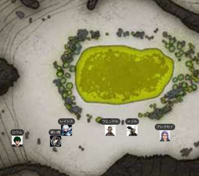 ●A.I 240/12/14 朝 アーランティアの木 深部![]() GM:でははじまりはじまり~!第43回!さて、アーランティアの大樹に入り、いよいよアーランティアの玉座に入る手前まできました。 ウェンドル:「この沼地で、ドライアドの杖に指輪を全部はめて、歌を歌えばいいんだね?」 メリル:「そのはずさ。みんな、準備はいいかい?」 レイシス:(歌って、替え歌のやつか。「いいよ」 ウェンドル:「では・・(杖を沼地の地面に刺す)。いいよ姉さん」 レイシス:あれ、沼の下に行く必要があるわけではないのか。 メリル:「まぁみてな。♪おお~我があるじ~ アーランティア~~」 ロクム:階段でも出るんじゃないのか? レイシス:なるほど。みてよう GM:すると、歌声とともに・・・沼の水がどんどん引いていき・・! レイシス:なんかでた GM:底が見えたかと思うと、南東へ伸びる道が新たに出てきたのだ ロクム:トンネルか ![]() メリル:「そう、この下に玉座があるはずだ。さあ、いくよ」 レイシス:「なるほど。りょーかい」 GM:というわけで、行きますね~。ざっざっざ レイシス:はーい ●A.I 240/12/14 午前 アーランティアの玉座 ![]() GM:←側にどうぞ~。すごい広い洞窟・・まるで何かの巣の感じさえする ロクム:下は池じゃないのか GM:ええ、左下の水たまりが、これ底の部分ですね! ![]() GM:んで、右下が、断面図。わかりますかね? ![]() レイシス:天井も高いってことです? ロクム:住みにくそうだな GM:つまり、真ん中が巨大な「まゆ(繭)」みたくなっているんです。その上に、しっかり玉座がある! レイシス:あ、なるほど GM:この見えない部分の下が、左下の水たまりですね。沼というか。右下の絵が断面図と。まぁこういう感じなので・・真ん中へはつたっていかねばなりませんw 飛ぶかねw アレクセイ:玉座も移設したの? GM:というか、魔改造した感じですかねえ・・おや、当主いますよ レイシス:あ、いるんだ ![]() アーランティア:「ほう・・侵入者がいるとは聞いていたが・・・。」 ![]() タウルグレス:「・・・」 ロクム:ロックな女王だな レイシス:うむ GM:彼女がアーランティア・・見た感じ、ドライアドですね。その横にはブライトにやられているホブゴブリン?の臣下らしき者が控えている。 ロクム:(防御値かてー レイシス:ですね。。 アーランティア:「おや・・そこの一人・・ブライトにかかっておるな・・。私の創造物はお気に入りかえ?」(と、レイシスに向かって言うw レイシス:「・・・、いや、全然」 メリル:「さすが女王だ・・はんぱない防御力だ・・私ではたぶん当たらない。命中重視でよろしく」 ウェンドル:「私たちで挟むが・・足場に気を付けて。」 レイシス:(この人、なんで裏切ったんですっけ? アーランティア:「そうか・・ははは。まぁこの下の繭をごらん。これがブライトの源だよ。ここで生成され、森全体に振りまいている。」(あ、こいつはもともとゲンドウィン女王の臣下でしたが、裏切りましたw アーランティア:「ブライトの力を得たからね」 レイシス:(最初からゲンドウィンさんが嫌いだったんですっけ。。 レイシス:「そんなにいいかね。ブライトが。」 GM:そうそうw まぁ独立心が強いというか・・ レイシス:なるほど ロクム:変な趣味だな~ アレクセイ:これ、なんか特別なバフでも掛かってるんじゃないの? アーランティア:「私にとってはな。タウルグレス。遠慮はせずに、私が魔法を唱えている間、私を護るのだ」 ロクム:ブライトに寄生されて操られてるとかだったりして アレクセイ:例の杖が対抗策になってるとかの。 メリル:「それもある・・何か方策が・・。あ!」 ウェンドル:「そうだ!姉さん。ドライアドの杖!」 レイシス:「ん?、なにか思い出した?」 ウェンドル:「これと共にゲンドウィンの歌を歌うんだ。そうすれば、何かやつに起きるかもしれない」 レイシス:「おぉ、じゃあ、最初にお願い」 GM:あとは・・・魔法知識をどうぞ!あと一つなにかありそう レイシス:替え歌じゃない方か。 GM:そそw オリジナルのほうですw アレクセイ:1d20+0+7 【魔法知識】 <BCDice:アレクセイ>:DiceBot : (1D20+0+7) → 15[15]+0+7 → 22 ロクム:1d20+1+7+2 【魔法知識】 <BCDice:ロクム>:DiceBot : (1D20+1+7+2) → 4[4]+1+7+2 → 14 レイシス:1d20+4+7+7 魔法知識(INT) <BCDice:レイシス>:DiceBot : (1D20+4+7+7) → 19[19]+4+7+7 → 37 GM:これは25いるかなwお、レイシス!! その傍らにいるホブゴブ・・魅了されているっぽいから・・うまくいけば・・ レイシス:ホブさんだったのか GM:牙剣軍の捕虜だったっぽいですね! レイシス:正気に戻ればって感じでしょうか。 メリル:「ありうるね。まぁ敵にならないだけでもありがたいよ」 レイシス:「そだね。やってみようよ」 ウェンドル:「とにかく、アーランティアに集中しないと。んじゃ姉さんは歌を。ぼくは足であいつの背後に回って、挟撃要員になるよ」 ロクム:「頼むぜ~」 メリル:「みんな。これが最後の戦いだよ!今のうち、薬とか飲んどきな!」 レイシス:ヒロポンのもう GM:というわけで、ラストバトルです。他の方も、バフしたい方はどぞ