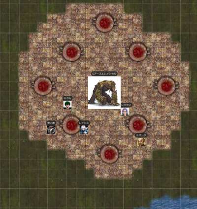 ●A.I 241/1/6 朝 ヴォルト地界、フローネクサス![]() GM:んじゃはじまりはじまり~ 49回。ええと、スグーク(中身イコール)を連れて、ネクサス調整の旅ですね~。2つまで前回終わらせました。ドラゴン倒してねw 去年か。・・・失礼、シグークだ。 レイシス:w ロクム:スタンプラリー的なのの途中だっけ レイシス:そですね GM:ですw それで残る一つに今、向かっています。ちょうどこのシグークコマのいる山地のあたりですねー。 GM:そこへ向かいます~。いきなり着きそうなんで、皆さん準備よろしいですかな? レイシス:はーい ロクム:はーい レイシス:あ、戦闘になりそうなら、回復したいですが GM:どうぞw そういう意味ですw レイシス:アレクのHPがない GM:え・・ほんとだw アレク重傷間際じゃんw レイシス:あ、減ってるって意味でw GM:治そう治そう 旅途中なんで回復は自動でせんの です。 レイシス:なんか作ってー > ロクムー アレクセイ:前回のまんまだし。 GM:料理でやるのも手ですね レイシス:ここは、「フォンデュ」とか ロクム:作業判定:13以上 効果:hp+60 pp+12 (7以下完全失敗。失敗pp+6、26以上hp+120、pp+24 ロクム:いくぜー GM:フォンデュすね、どうぞ レイシス:おー ロクム:1d20+8+0+8+5 【作業】 <BCDice:ロクム>:DiceBot : (1D20+8+0+8+5) → 12[12]+8+0+8+5 → 33 GM:よゆーw レイシス:さすがである ロクム:うめぇ! GM:+120hp pp+24だから もう満タンですねw レイシス:「美味しぎる~」 レイシス:すぎる か GM:チーズフォンデュ最近食べてないなーw レイシス:うむ GM:さて、では満腹になって、当地へ向かいます~ レイシス:はーい GM:この川の湾曲部の上には大きな丘がそびえ立っている。水銀の流れが紺碧の水面を流れ、ダイヤモンドのようにきらめき、草に覆われた丘の中腹にきらめく光の模様を落としている。丘の頂上には、石と水晶を並べた円形の台座が立っている。地下室のこの部分は、起伏のある草に覆われた丘陵から成り、その後は岩だらけの砂漠になっている。 ジグーク:「おお、ここだけはそのままじゃな。ではさっそくといきたいが」 ロクム:地下なのか? GM:地下ですね。山のトンネル内部にありました。湖の川沿いに。 レイシス:「特に問題なさそう?」 GM:そこで・・魔法知識~ もしくは知覚。 アレクセイ:ダメじゃん、入っただけで死ぬレベルに…(水銀流してるという噂の遺跡もこれで開けられないとか) レイシス:1d20+4+8+7 魔法知識(INT) <BCDice:レイシス>:DiceBot : (1D20+4+8+7) → 12[12]+4+8+7 → 31 GM:あ、水の中ってか、洞窟の中だから大丈夫だぞw ロクム:1d20+2+8+5 +2 【知覚】 <BCDice:ロクム>:DiceBot : (1D20+2+8+5) → 12[12]+2+8+5 → 27 アレクセイ:1d20+10+8+5 【知覚】 <BCDice:アレクセイ>:DiceBot : (1D20+10+8+5) → 8[8]+10+8+5 → 31 GM:お、レイシス! 君はこのネクサス石の中央で起きている現象を見逃さなかった! なんか・・砂粒が・・浮き出している・・!? レイシス:え レイシス:「なんかでてきてるけど、大丈夫?」>ジグーク GM:アレクもそれを核にできるね・・やがて砂粒がどんどん中心にかたまって・集まり・・・どんどん岩のように・・ レイシス:ゴーレムさんかな? ジグーク:「む・・なんだと?・・こ、これはいかん・・魔法の護衛を用意していたらしい!知らんぞこんなものは!」 レイシス:えー ![]() ジグーク:「ぐあ・・こんなでかいものを!」 レイシス:「でちゃったものは、しょうがないね。」 アレクセイ:(あ、勝てば使える奴だ) GM:はい、お察しの通り、アースエレメンタルでした!ゴーレムではなかったけどw レイシス:w GM:(そのとおり!(勝てばryジグーク:というわけで、いにしあー アレクセイ:1d20+2+8 イニシアチブ <BCDice:アレクセイ>:DiceBot : (1D20+2+8) → 5[5]+2+8 → 15 レイシス:めずらしく耐性がない Cアースエレメンタル:1d20+1+9 イニシアチブ <BCDice:Cアースエレメンタル>:DiceBot : (1D20+1+9) → 11[11]+1+9 → 21 ロクム:1d20+8+8+2+2 イニシアチブ <BCDice:ロクム>:DiceBot : (1D20+8+8+2+2) → 10[10]+8+8+2+2 → 30 GM:hp鬼やでw レイシス:1d20+5+8+4 イニシアチブ <BCDice:レイシス>:DiceBot : (1D20+5+8+4) → 7[7]+5+8+4 → 24 GM:しかも4x4てw レイシス:たしかに ロクム:即死使えんか GM:あ、開始時は配置自由でいいですよ~。 レイシス:LV高杉ですね GM:ピンモンスターなんで、そう簡単にはいかないレベルなようで ロクム:でもこいつAC以外防御無いぞ レイシス:TC、RC、MCは? GM:あ、失礼w レイシス:全部同じかとおもったw GM:あいw レイシス:どもですw GM:ま、今のレベルからすれば、当たりやすいほうw GM:では、ロクムからどぞ レイシス:はさんで、タコ殴りか燃やすしかないか GM:アレクその近接位置でいいんか?w ロクム:アレクが丁度良い位置に レイシス:w レイシス:最初からはさみ位置とかでもいいんだろうか GM:いいですよ~ ロクム:・スパイ・エッジ:pp:4 主 DEX vs MC 近接攻撃/遠隔攻撃 クリーチャー1体 6w+DEX「武器」 ヒット:目標は命中判定に不利を受ける(セーブ・終了) ミス:半減ダメージのみ GM:本当は不意打ちでしたが、皆さん察知したので。 ロクム:1d20+8+8+1+5 vs MC スパイ・エッジ(軽刀剣類) <BCDice:ロクム>:DiceBot : (1D20+8+8+1+5) → 12[12]+8+8+1+5 → 34 